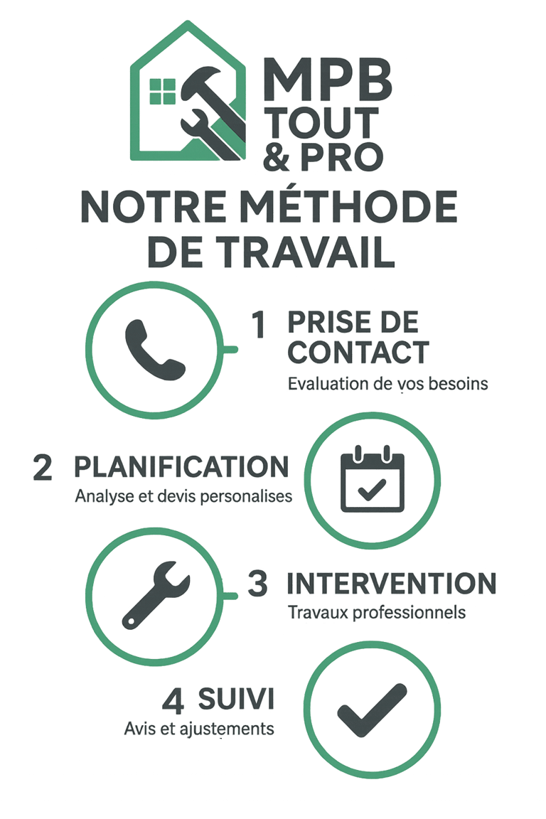 Chez MPB Tout & Pro, chaque projet suit une méthode claire et efficace pour garantir votre satisfaction à chaque étape.